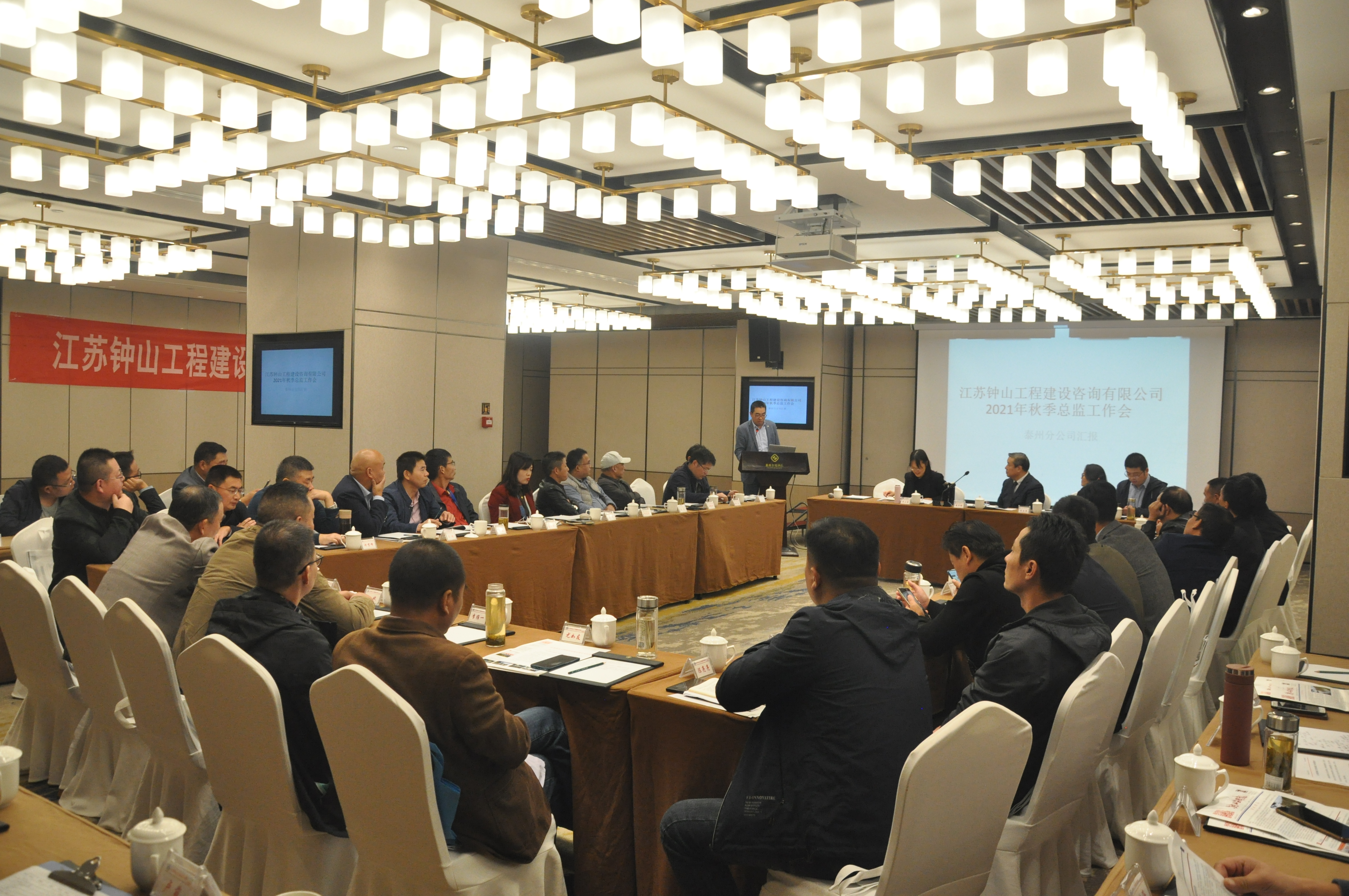 泰州分公司苏胜洪对近一年来分公司的发展作了汇报,介绍了泰州分公司在监的项目进展情况,以及对如何做好分公司管理、经营工作方面做了分享。项目总监彭海亚对《装配式建筑监理工作规程》主要内容作了解读,总监程克明详细介绍了小米华东总部项目的进展和监理管理情况,分享了质量、安全、进度方面的监理管控方法,介绍了桩基和基础施工阶段的重难点和解决措施。然后各分公司老总、项目总监发言,大家对于目前公司的发展问题、项目上遇到的问题作了探讨及交流。