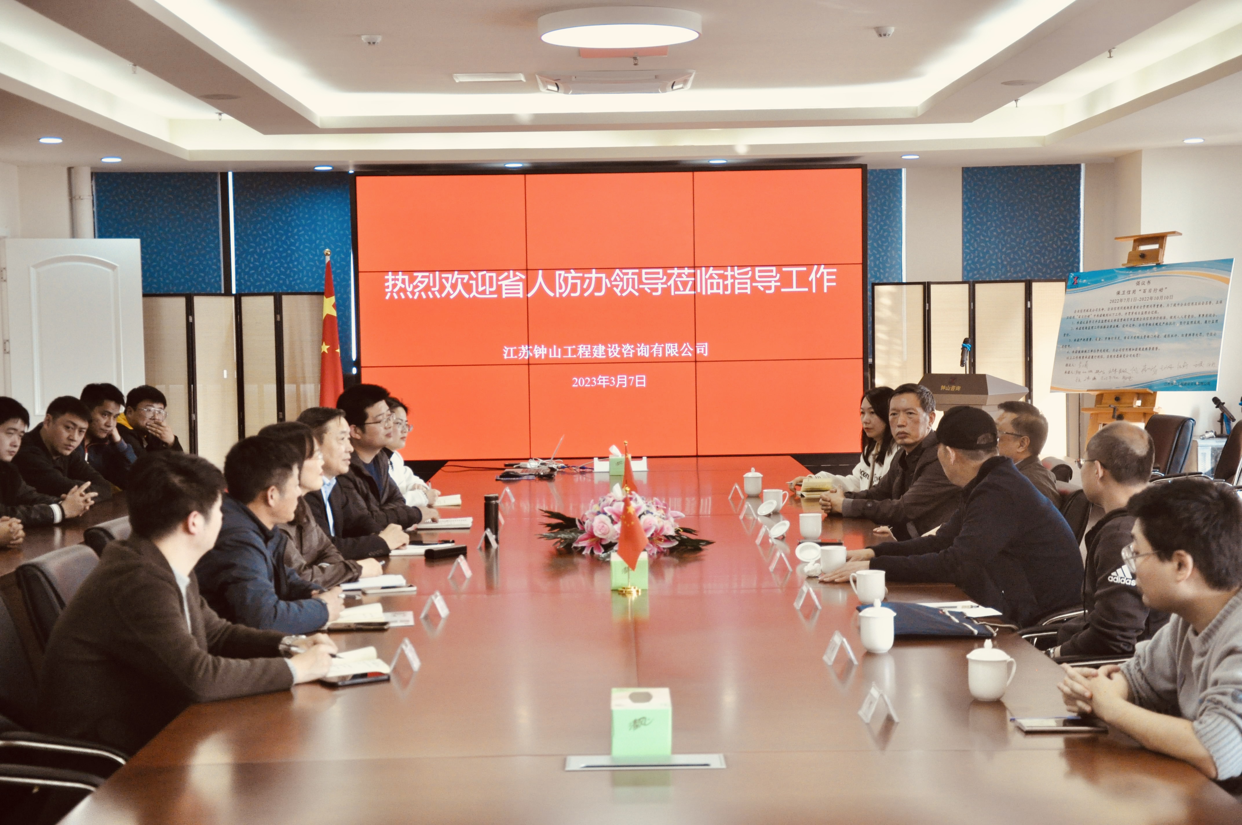 2023年3月7日下午,江苏省国防动员办公室一级巡视员沈斌、设施管理处处长李治国,江苏省人防协会会长李洪忠、人防协会秘书长吕琰、人防协会监理分会秘书长王俊岭一行人到调研人防监理工作情况,公司领导及办公室等人员参与接待。